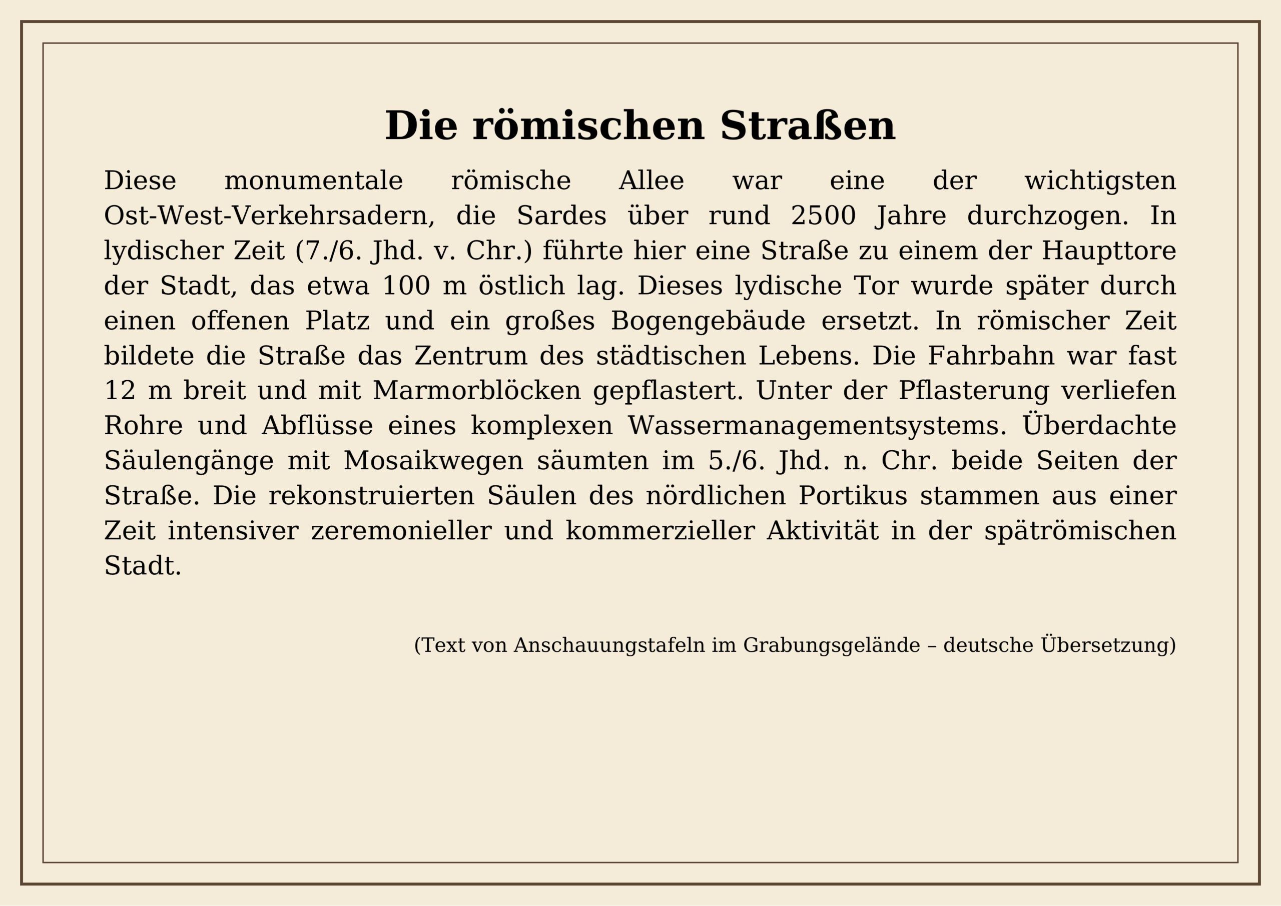 Literaturquellen: Geschichte Kleinasiens in der Antike, @ Verlag C. H. Beck oHG München, 2. durchgesehene Auflage 2010, Chr. Marek (P. Frei), S. 152/153, 191-193, 199-201, 228, 261, 316, 411, 465, 504, 522, 547, 554 / Dumont Reise-Handbuch Türkei, Westtürkei – Zentralanatolien, @ DuMont Reiseverlag, 1. Auflage 2011, H. E. Latzke, S. 225 / Antike Stätten am Mittelmeer, Metzler Lexikon, Verlag J. B. Metzler, 1999, D.O.A. Klose, S. 604-609 / Die Römischen Kaiser Chris Scarre, Lizenzausgabe für Welrbild-Verlag, 1998; S. 28-35 / Griechische Mythologie, Verlag Michalis Toubis S. 17 & 53, Athen, @1995, Sofia Souli, Übersetzung. H. E. Langenfass, S. 38/39, 64-80 // Antike, Metzler Lexikon, Verlag J: B: Metzler, 2. Auflage, 2006, S. 302