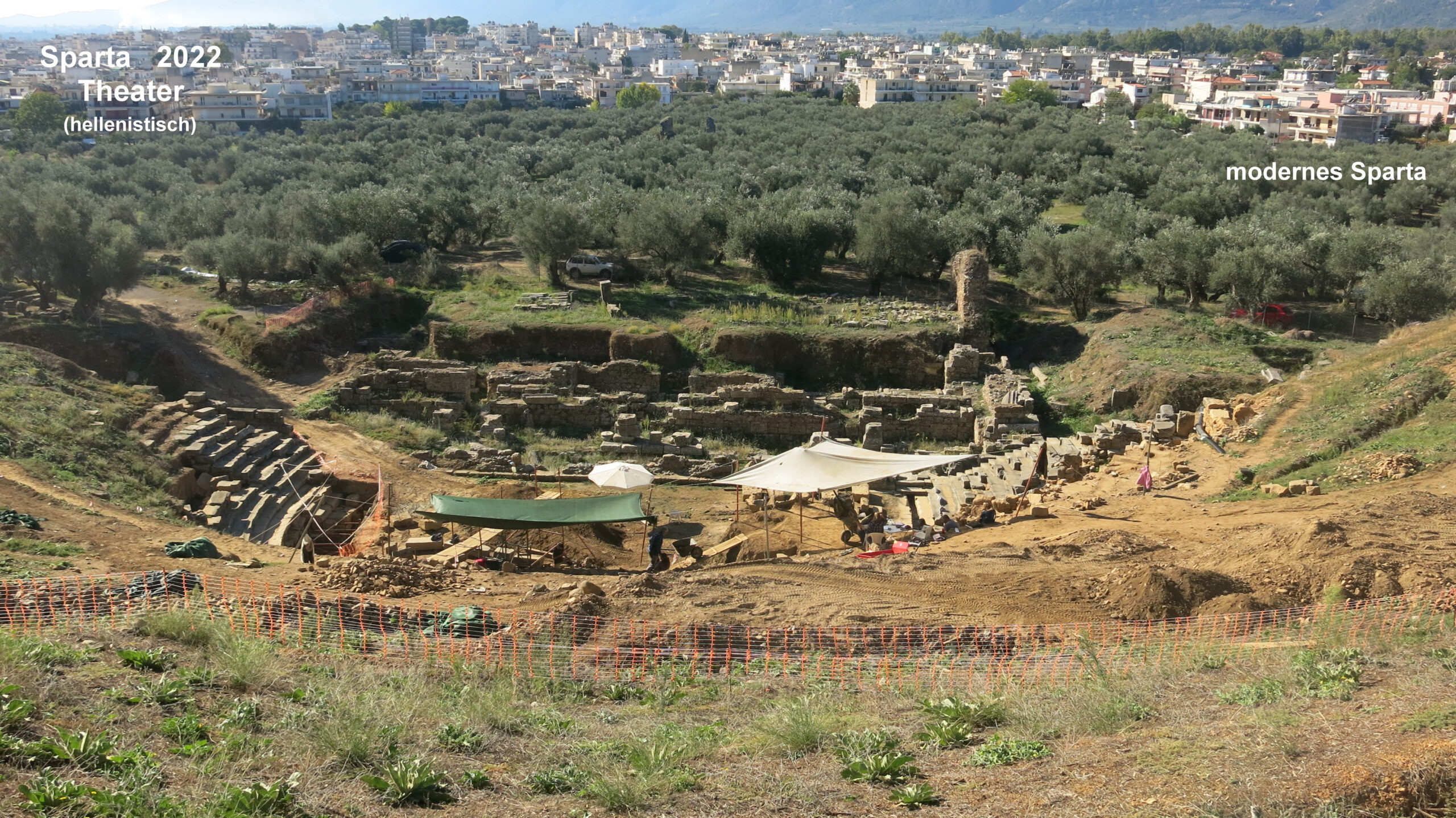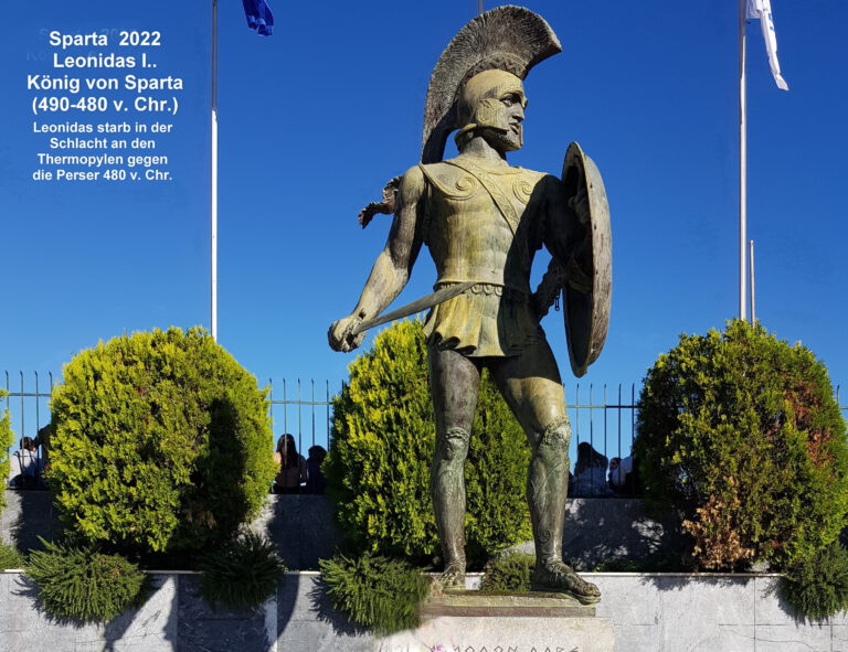 Die baulich-antiken Zeugen Spartas sind in ihrer Wahrnehmbarkeit überschaubar, ihr Erhaltungszustand lässt Wünsche offen. Die Akropolis von Sparta war ein Hügel, auf dessen Plateau der Tempel der Athene Chalkioikos (Stadtgöttin von Sparta) stand. Reste der Stadtmauer und einer Stoa sind gegeben. In der Agora befanden sich die Versammlungs- und Amtsgebäude sowie das mit weißem Marmor ausgestattete Theater aus der frühen römischen Kaiserzeit. In dessen Nähe befinden sich die Ruinen römischer Bäder. Die Stadt hatte darüber hinaus noch weitere Tempel und Monumente, deren Erkennbarkeit schwierig ist, u. a. der Dromos mit zwei Gymnasien oder Überreste des Heiligtums der Artemis Orthia am Fluss Eurotas. „Wenn Sparta verödete und nur die Tempel und Grundmauern der Bauten blieben, würden die Späteren gewiss voller Unglauben seine Macht im Vergleich zu seinem Ruhm bezweifeln“ (Thukydides, z. n. Baedecker, siehe Quellen). Nach unserem Besuch im antiken Sparta ist dem nichts hinzuzufügen – Sparta bleibt dennoch historisch erhaben. Die Fotos entstanden auf einer geführten Privatreise im Herbst 2022. Artikel bei Wikipedia zu: SPARTA