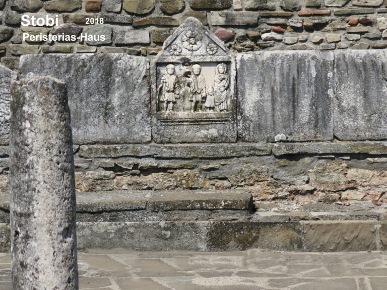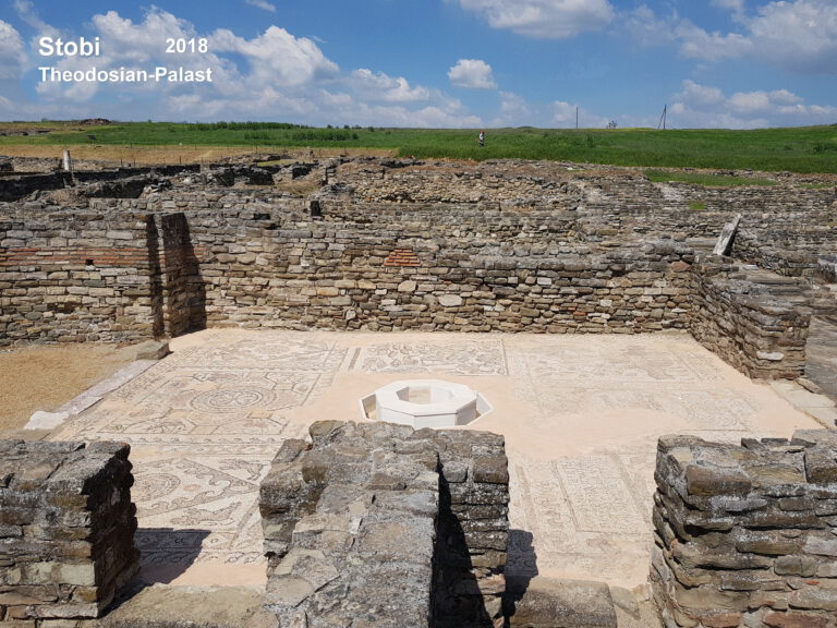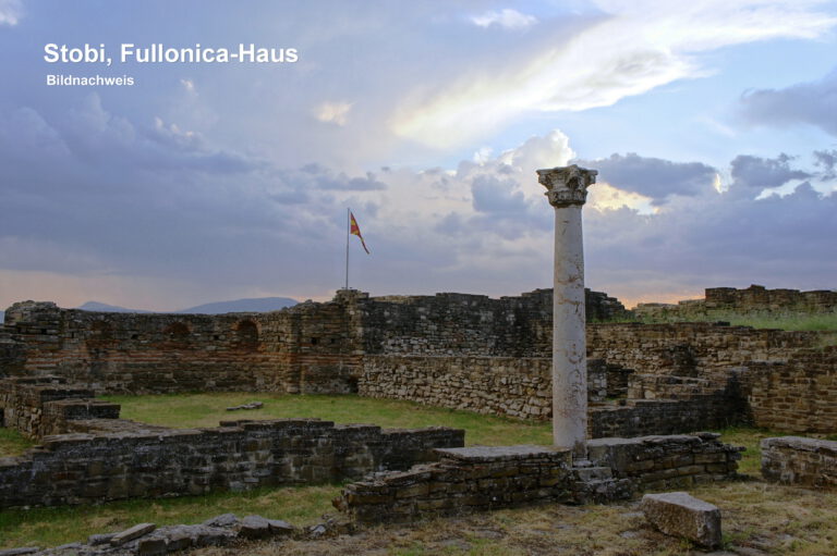 Quellen zu Stobi: Mazedonien Trescher Verlag Berlin, 5. Aktualisierte Auflage, Ph. V. Oppeln, S. 271/72 / Antike Stätten am Mittelmeer, Metzler Lexikon, Verlag J. B. Metzler, 1999, F. Dovener, S.238-240. Bildnachweis: https://upload.wikimedia.org/wikipedia/commons/1/10/Domus_Fulonica