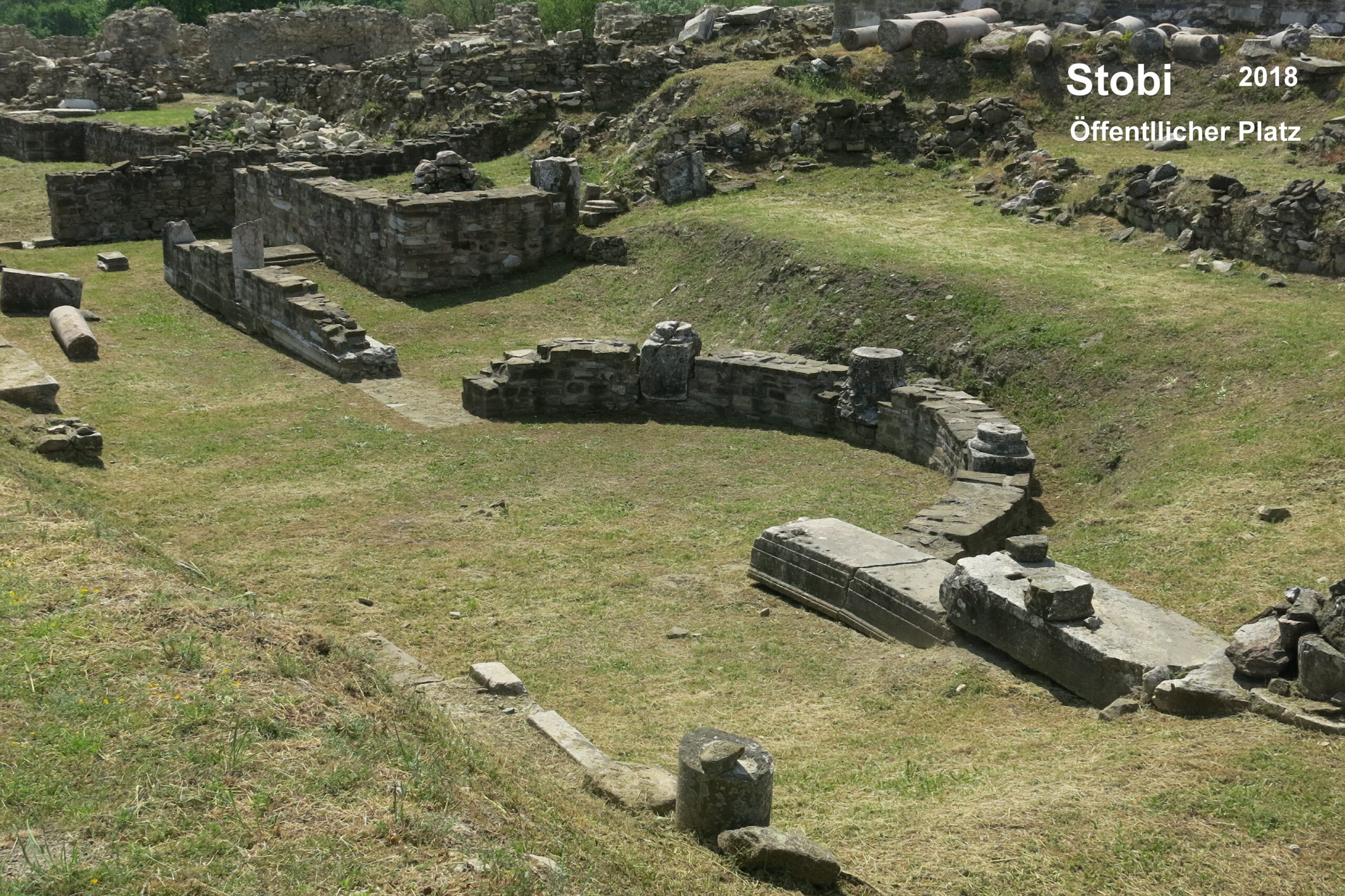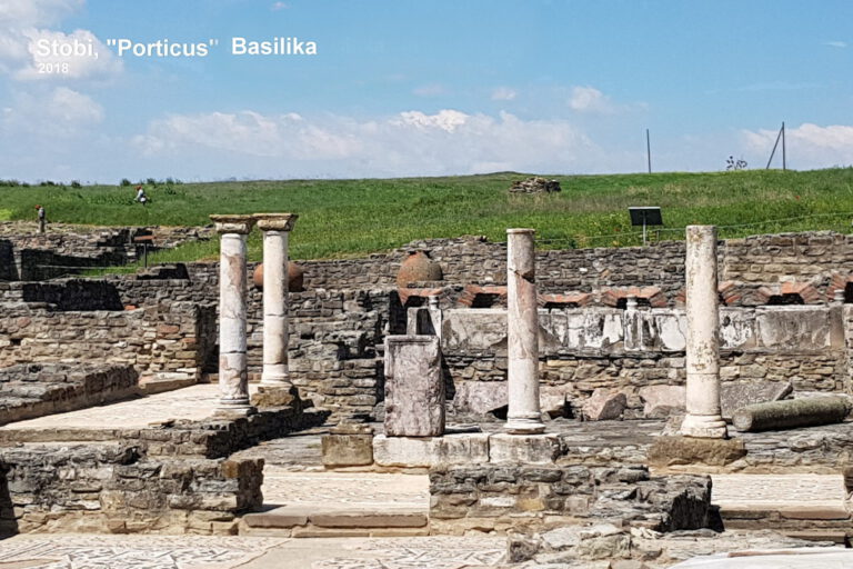 Der Niedergang von Stobi vollzog sich – wie insgesamt auf dem Balkan – ab dem 5. Jhd. Die Ostgoten haben 479 Stobi besetzt und verwüstet. Ein starkes Erdbeben verschlimmerte 518 die Situation des Ortes nochmals, gefolgt von weiteren äußern, feindlichen Plünderungen. Stobi wurde in der Mitte des 6. Jhd. entvölkert aufgegeben. Im dem ausgedehnten Grabungsgelände (ca. 20 ha), sind die Ruinen von Wohngebäuden, der Basiliken bzw. Synagogen, das im 3. Jahrhundert erbaute Theater, ein Bischofssitz, ein großes und ein kleines Bad sowie ein spätrömischer/ frühchristlicher Bischofssitz und weitere Gebäudereste gut zu besichtigen. Die Ruinen von Stobi sind die wichtigsten antiken Denkmale in Nordmazedonien. Artikel bei Wikipedia zu: STOBI